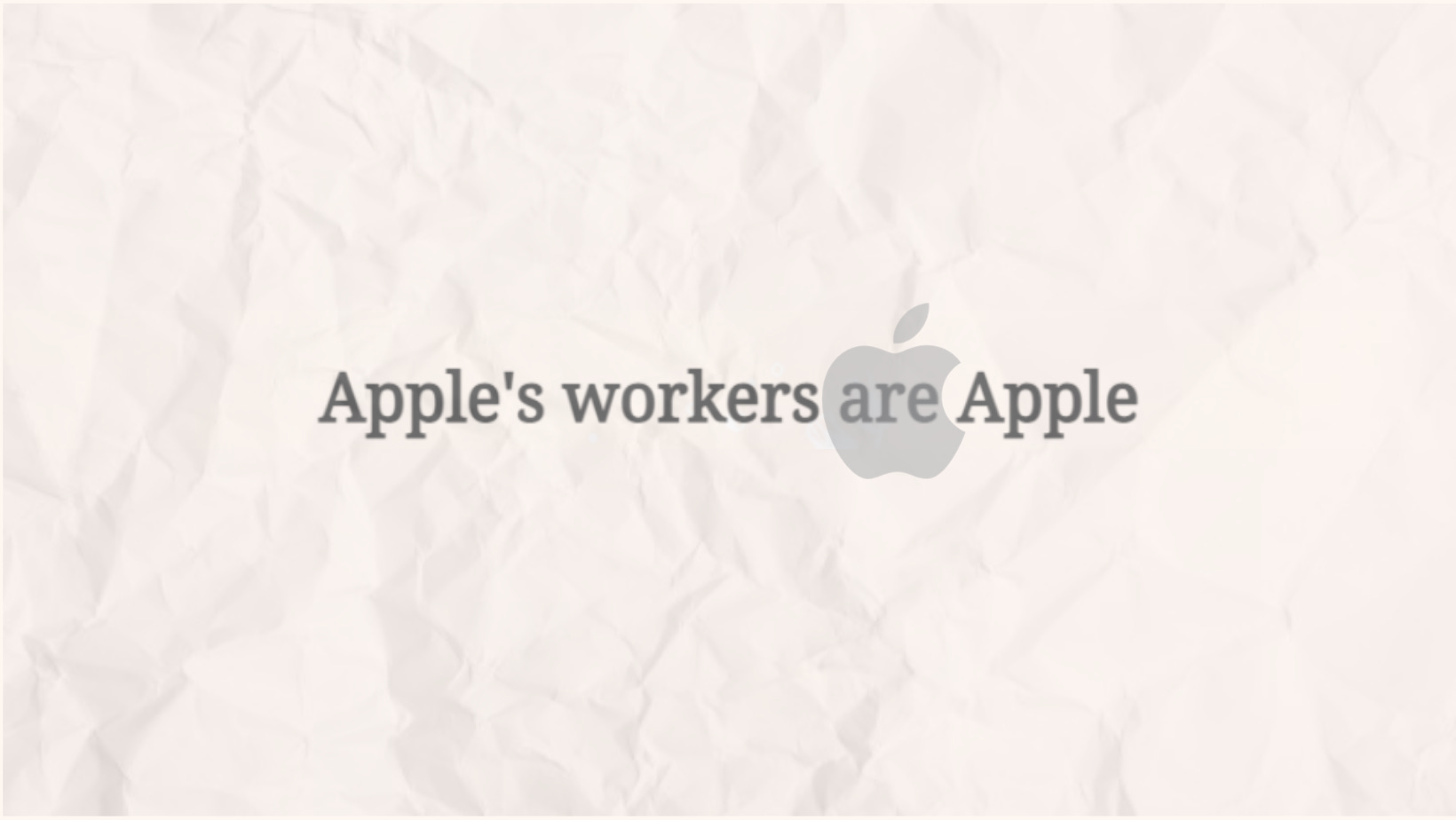 “A verdade é que, para muitos funcionários da Apple, [...] a cultura do segredo cria uma fortaleza sombria e intimidante. Quando pressionamos por responsabilidade e reparação das injustiças persistentes que testemunhamos ou vivenciamos em nosso local de trabalho, nos deparamos com um padrão de isolamento, degradação e gaslighting.”