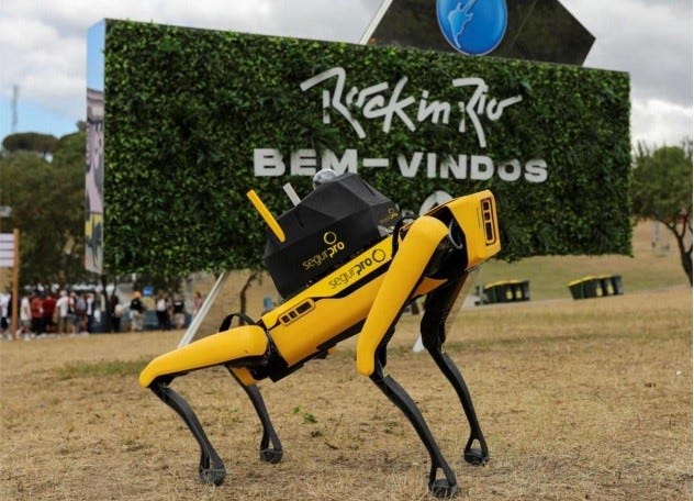 No caso, o cachorro-robô do Rock in Rio foi personalizado pela empresa SegurPro para atuar: