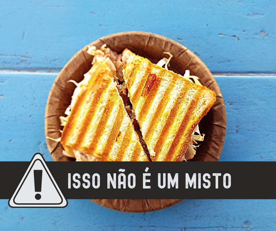 Alguns chamam de misto, mas minha gente, que tipo de misto vem só o queijo? Eu não tive outra escolha, senão fingir chorar, embora eu quisesse mesmo, só que de raiva.