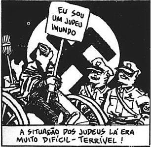 Um exemplo usado na HQ é a forma como se retrata os judeus na Alemanha antes da guerra, expondo um cartaz segurado por um deles com os dizeres "eu sou um judeu sujo", evidenciando a forma como eram vistos pela sociedade: sujos, repulsivos, repugnantes.