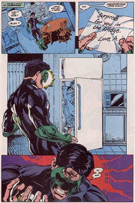 “O termo veio do mundo das HQs e refere-se à história do Lanterna Verde #54 (1994), escrita por Ron Marz. Na história, Kyle Rayner (o Lanterna pós Hal Jordan) volta para casa um belo dia e encontra a namorada, Alexandra Dewitt, morta e enfiada dentro da geladeira. Ele surta de dor e ódio, vai atrás do responsável, o Major Força, tortura e quase mata o cara. Claro que a morte da Alex tem todo um papel importante no desenvolvimento dele como super-herói…Por que né? De que outra maneira um personagem poderia se desenvolver, que não tendo a namorada brutalmente assassinada?”
