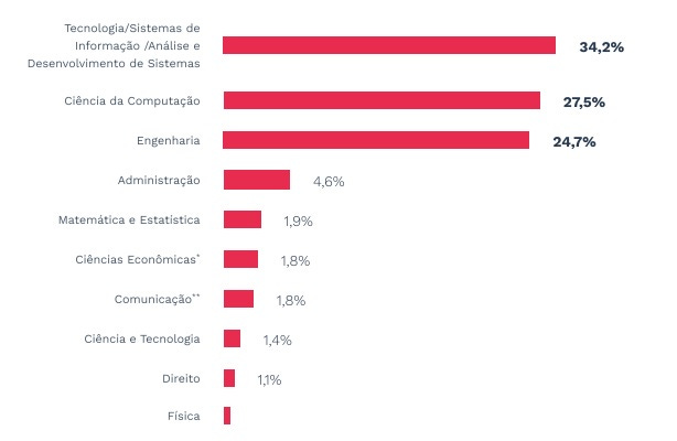 Destaque para as formações nas áreas de Comunicação e Direito. Como assim? Pois tem profissionais de humanas na área de TI, sim!