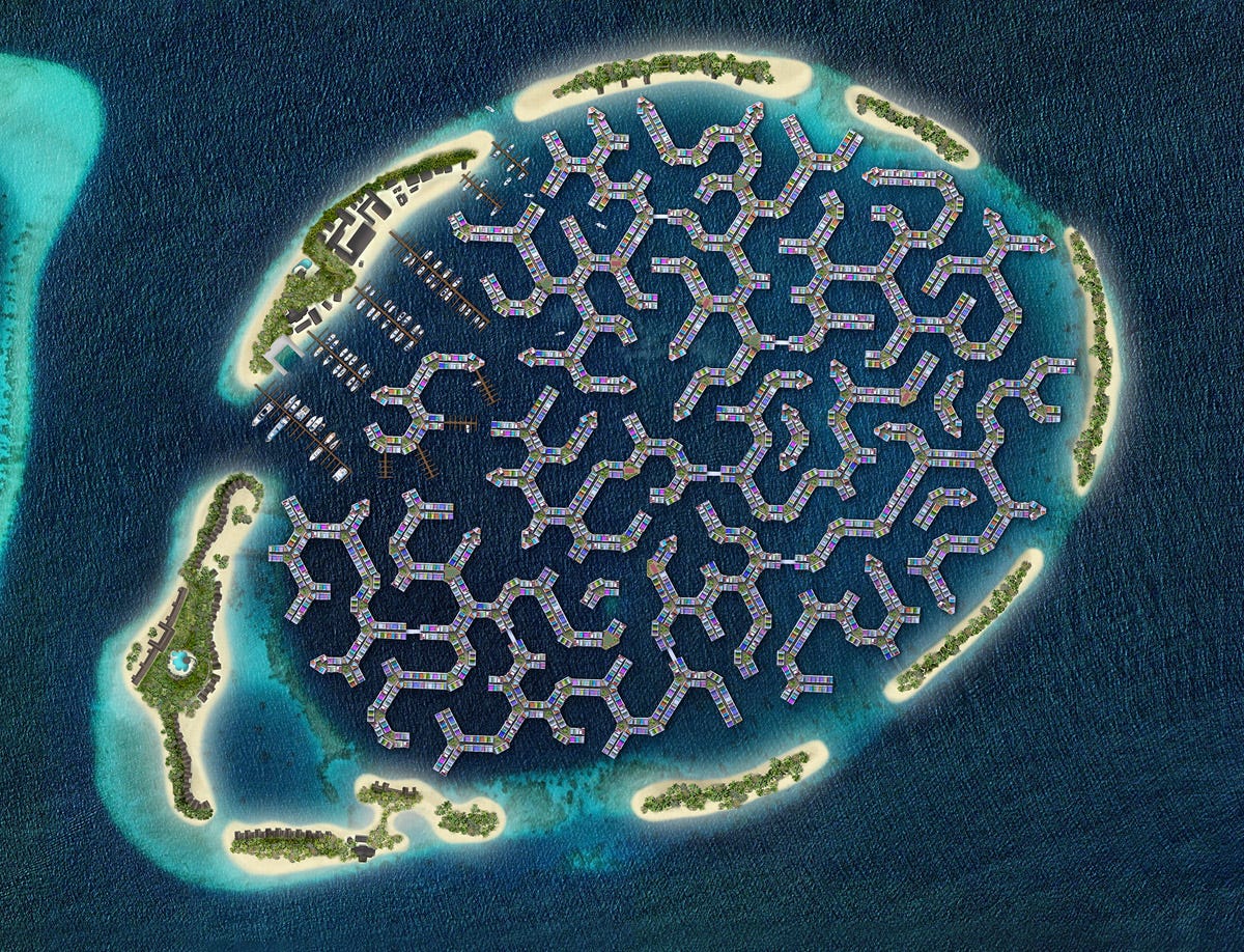 A Maldives Floating City é outro exemplo de protótipo de cidade flutuante. Como as Maldivas correm o risco de ficar debaixo d’água nos próximos 30 anos, a solução está sendo desenvolvida pelo governo.