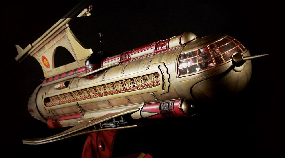 Aqui outra roubadinha, porque a origem também é nos quadrinhos, mais precisamente da obra de Alex Raymond, Flash Gordon. Estreando em 1934, ganhou as telas de cinema dois anos depois, e teve um remake esquisitão em 1980. Mas o design de sua nave era tão legal que – confessadamente – inspirou o visual vintage das belíssimas Starship, que deverão mais dia menos dia levar a humanidade a Marte. Ou ao planeta Mongo.