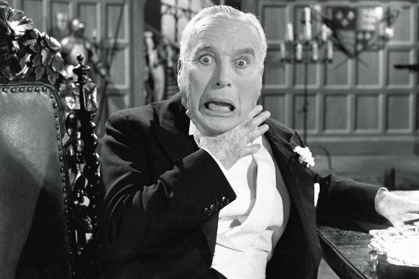 Em 1952, após uma viagem ao Reino Unido, Chaplin tomou conhecimento de que seu visto de imigração que permitia que vivesse nos EUA seria revogado e nem retornou. Vendeu sua participação nos estúdios da United Artists e foi gozar de sua fama e fortuna na Europa. Seu retorno ao cinema ocorreria cinco anos depois, grisalho e com textos ágeis de comédia na ponta da língua.